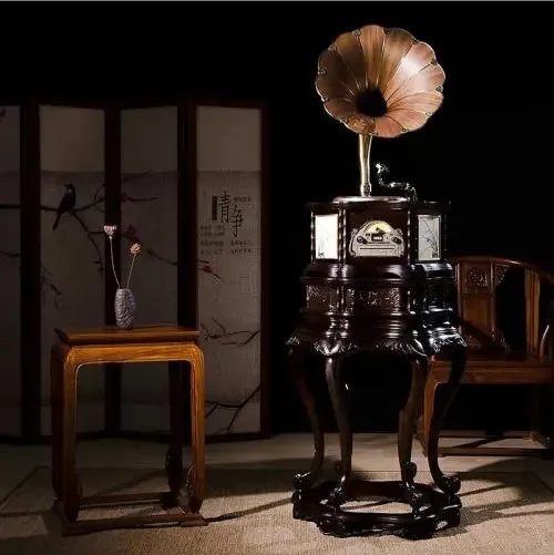 1、“花样的年华”留声机,海派旗袍主题,沿袭19世纪30年代老上海ART DECO家具风格,造型简约修长,将古典之美展现的淋漓尽致。