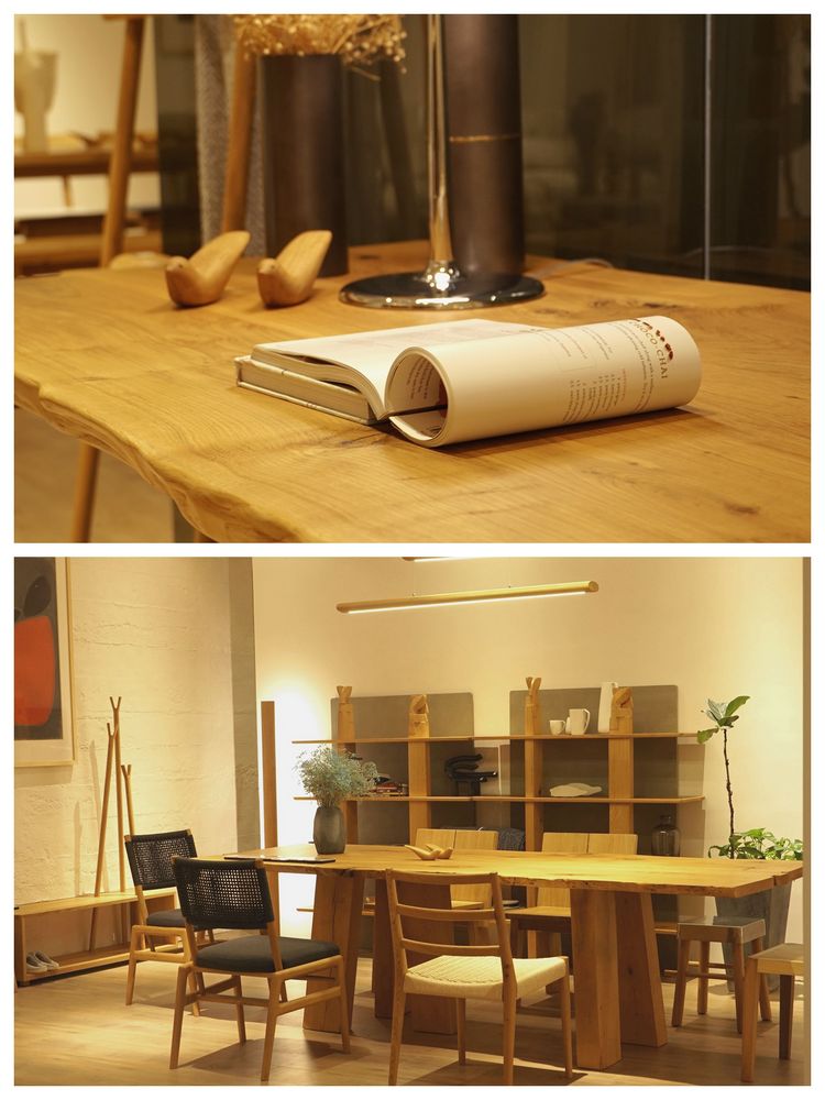 3、木质长桌,和好友闲聊品茶,或者独处时读一本好书,悠闲惬意。