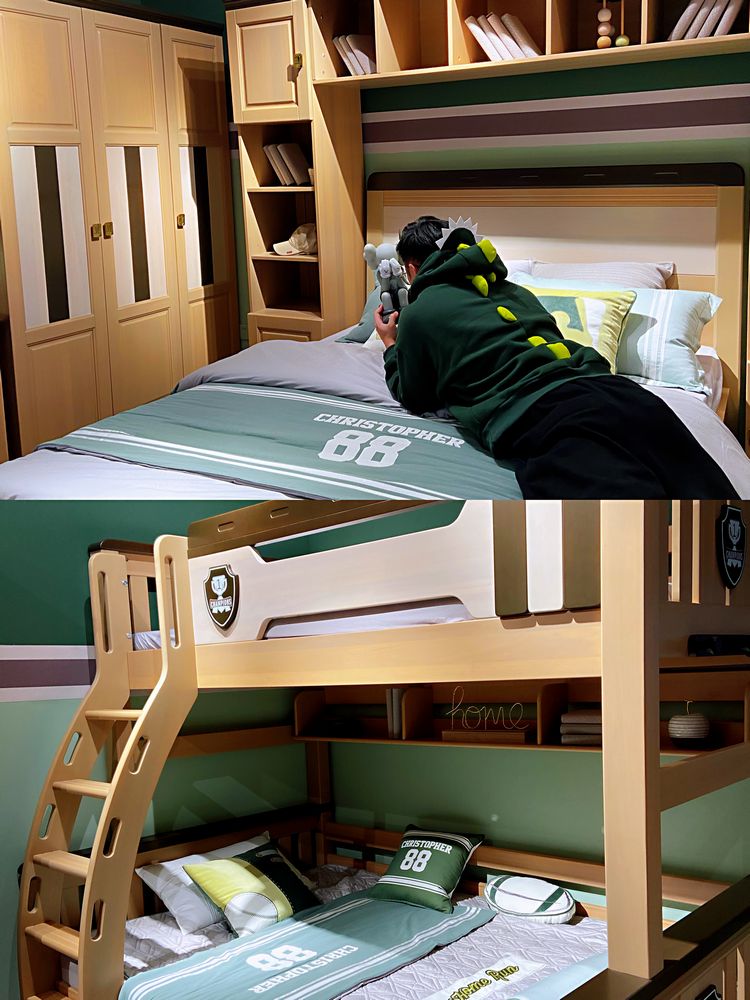 过一会,好动的“小恐龙”又发现棒球主体的房间,小到抱枕,大至被子,都是棒球元素,恨不得马上跳到床上,玩着心爱的玩具,进入自己的小世界。